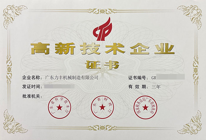 廣東力豐機(jī)械制造有限公司于2016年成為國(guó)家高新技術(shù)企業(yè)